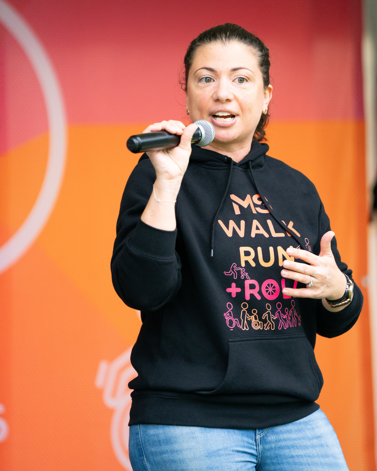 The MS Walk Run + Roll is Kristi’s opportunity each year to raise awareness of MS, come together with the MS community, share her personal journey, and fundraise for a cause that has deeply shaped her life. In recent years, Kristi has felt honoured to serve as an ambassador and speak on stage before the walk begins.